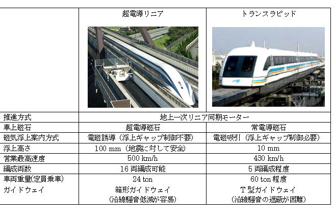 それでは日本が、困難と思われた超電導技術の採用にこだわり、そしてその技術を完成させたことにはどのくらいの価値があったのでしょうか? トランスラピッドシステムとの比較を表にしてみます。
