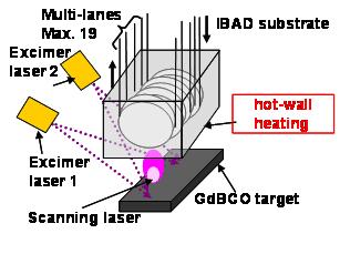A/cm¡¢Ä¹¤µ>500 m¤ÎGd-123Àþºà¤òºîÀ½¤¹¤ë¤³¤È¤ËÀ®¸ù¤·¡¢Ic¤ÈŤµ¤ÎÀѤˤª¤¤¤ÆÅö»þ¤ÎÀ¤³¦µÏ¿¤òãÀ®¤·¤Æ¤¤¤ë¡£ËܼêË¡¤ÏÈæ³ÓŪ°ÂÄê¤Ë¹âÆÃÀ¤òÆÀ¤ä¤¹¤¤ÆÃħ¤¬¤¢¤ë°ìÊý¡¢¹â²Á¤Ê¿¿¶õÀßÈ÷¤òɬÍפȤ¹¤ë³ä¤ËÀ¸»ºÀ¤¬¹â¤¯¤Ê¤¤¤³¤È¤«¤é¥³¥¹¥ÈÄ㸺¤¬²ÝÂê¤È¤µ¤ì¤Æ¤¤¿¤¬¡¢¤½¤Î¸åÌó2ǯ´Ö¤Î³«È¯¤Ë¤è¤ê¡¢¡Âç·¿¤ÎIBADÀßÈ÷¤òÍѤ¤¤¿¶ËÇö¤ÎMgOÇÛ¸þÃæ´ÖÁؤιâ®À¸»º¤ËÀ®¸ù¤¹¤ë¤È¤È¤â¤Ë¡¢¢ÆÈ¼«¤Î¥Û¥Ã¥È¥¦¥©¡¼¥ë·¿PLDÁõÃ֤γ«È¯¤Ë¤è¤ê¶Ñ°ìÀ¤Î¹â¤¤¹âÆÃÀÀþºà¤ò¹â®¤Ç°ÂÄêÀ½Â¤¤¹¤ë¤³¤È¤ËÀ®¸ù¤·¡¢ËܼêË¡¤Ë¤è¤ëRE123Àþºà¤Î¼ÂÍѲ½¤ËÌÜÅÓ¤ò¤Ä¤±¤¿¡£