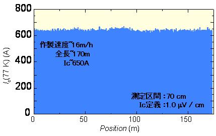 AÀþºà¤òÀ½Â¤Â®ÅÙ60 m/h¤ÇºîÀ½¤¹¤ë¤Ë»ê¤Ã¤¿¡£¤µ¤é¤Ë3 m¶¯¤Î¸üËìGd-123Àþºà»îºî¤Î·ë²Ì¡¢¿Þ4¤Ë¼¨¤¹¤è¤¦¤ËÀ½Â¤Â®ÅÙ16 m/h¤ÇIc~650 A¤Î¶Ñ°ì¤ÊʬÉÛ¤òͤ¹¤ë170