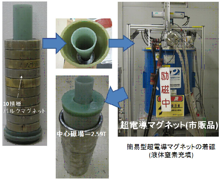 ¡¡ºâÃÄË¡¿Í¡¡Å´Æ»Áí¹çµ»½Ñ¸¦µæ½ê¡ÊÅ´Æ»Áí¸¦¡Ë¤Ï¹â²¹Ä¶ÅÅÆ³¥Ð¥ë¥¯ÂΤò»È¤Ã¤¿¥³¥ó¥Ñ¥¯¥È¤Ç¥â¥Ð¥¤¥ëÀ¤ËÍ¥¤ì¤¿´Ê°×·¿¤ÎĶÅÅÆ³¥Þ¥°¥Í¥Ã¥È¤ò³«È¯¤·¤¿¡£¼Â¸³¤Ë¤ª¤¤¤Æ ¥Ü¥¢·Â 45 mm ¤Î¶õ´Ö¤Ç 2.59 ¥Æ¥¹¥é¤Î¼§¾ì¶õ´Ö¤Î¼Â¸½¤ËÀ®¸ù¤·¡¢ NMR (MRI) ʬÀÏ´ï¤ò¤Ï¤¸¤á¡¢¥Ð¥ë¥¯ÂΤÎÃå¼§Åù¡¢³Æ¼ï¥¢¥×¥ê¥±¡¼¥·¥ç¥ó¤Ç³èÍѤǤ¤ë ¶¡µëÅŸ»ÉÔÍ×¤Ç°ÜÆ°²Äǽ¤ÊÂî¾å¼§¾ìȯÀ¸ÁõÃ֤Ȥ·¤ÆÂ礤¤Ë´üÂÔ¤µ¤ì¤ë¡£ ¤³¤Î¸¦µæÀ®²Ì¤Ï M. Tomita, et al .: J. Appl. Phys. , 109 , 023912 (2011) ¤Ë·ÇºÜ¤µ¤ì¤¿¡£