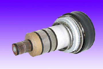 また、 3 kA の通電における交流損失も、これまでの世界記録 0.23 W/m の 50% となる 0.12 W/m を達成しており ( 図 2) 、現用の CV ケーブルに比べても、送電損失を 4 分の 1 に低減できるとのことである。同時に、 275 kV 気中終端接続部 ( 図 3) の開発にも成功しており、複合がい管を採用することで磁気碍管を用いた気中終端に比べ、長さで 80% 、重量で 20% の軽量化・コンパクト化を実現したそうである。