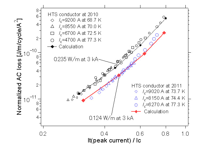 図 2. イットリウム超電導ケーブル導体の交流損失
