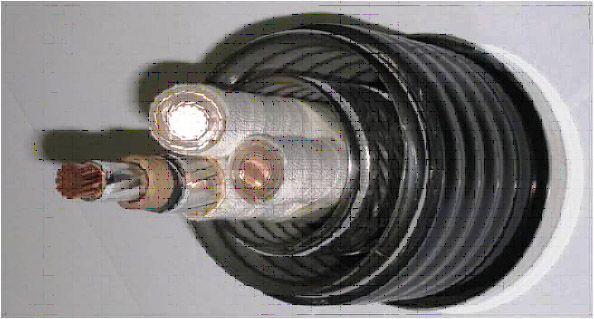 高温超電導ケーブルは、交流 3.3 kV 、 1.2 MVA 、定格電流 210 A ( 最大許容電流 400 A ) の容量を持つ、 コンパクトな 3 心一括型 ( ケーブル外径:約 100 mm ) である。超電導線には、線をスリム・コンパクト化 ( 幅: 2.8 mm 、厚さ: 0.31 mm ) することで交流損失の低減を図った交流機器用途線材として住友電工が販売しているビスマス系高温超電導線「