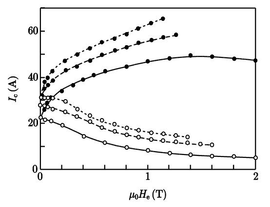 このたび、九州工業大学において縦磁界効果を利用した新しい超伝導直流電力ケーブルが提案された。ケーブルには RE 系コート線材を使用し、液体窒素温度での運転を想定している。縦磁界効果は 1960 年代に金属系超伝導体で発見された現象で、いろいろな特徴を有し、その最も顕著な特徴が、超伝導体に平行な磁界 ( 縦磁界 ) を加えた場合に図 1 のように臨界電流密度が自己磁界下の値より大きくなる、というものである。今回のケーブルもそうした特徴を活用したものである。