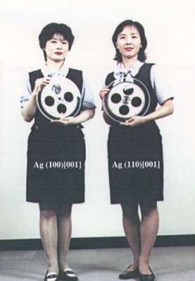 Y-123の基板として銀の{110}面を使った研究は、これまで東芝や超電導工学研究所などからも報告されている。この6月にハワイで行われたISTEC/MRSWorkshopでも英国のグループが{110}<110>の銀テープを作製しその効果を報告していたのも、記憶に新しい。銀テープの長尺化に実績のある同グループがこの分野に参入してきたことで、今後のY-123線材の長尺化競争が面白くなる(面白くなって欲しい)、と言ったら少し不謹慎だろうか。いずれにしろ、Y-123超電導線材の開発には、基盤技術ならぬ "基板技術"が重要であることはだれしもが認めるところ、競争と協調の中からブレークスルー技術が生まれ出て欲しい。