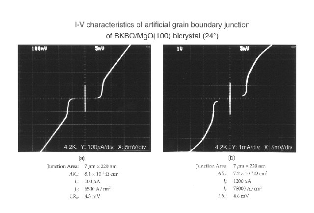 本誌Vol.3No.3(1994)では、名古屋大学工学部早川尚夫教授らのグループと三菱電機児島一良氏らのグループがSrTiO3バイクリスタル基板上のBKBO薄膜を用いて、ジョセフソン電流とエネルギーギャップ構造とが同時に観測できるSIS接合の作製に相次いで成功したことを報告した。その後三菱電機のグループでは、SISミキサなどの高周波デバイスへの適用を目的に、基板を高誘電率のSrTiO3から低誘電率のMgOに変更し、接合特性改善の研究を進めてきた。