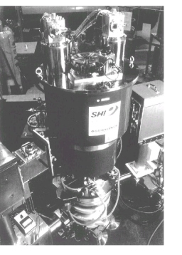 また、日本原子力研究所と住友重機械は、室温空間直径50 mm発生磁界10 Tの中性子散乱実験用冷凍機冷却型超伝導マグネットを開発している(写真2)。このマグネットは原研・東海研究所の改造3号炉JRR-3Mに設置され、中性子散乱などビーム実験装置として稼動を始めている。この超伝導マグネット装置は、ギャップ長さ50 mmのスプリット型超伝導コイルで構成され、ギャップ部は中性子透過のためにアルミニュームリングで電磁力を支持する構造となっている。10 Tまでの励磁時間は15分で、15時間の連続励磁試験結果が報告されている。10 T連続励磁において超伝導コイル温度4.2Kで安定しており、長時間運転に支障の無いことが確認されている。長期間にわたり手軽に強磁界を発生できる超伝導マグネットとして中性子散乱実験においても冷凍機冷却型超伝導マグネットの有用性が認められている。尚、本マグネットの開発成果は、9月13〜18日に米国で開催されたApplied Superconductivity Conferenceで報告されている。