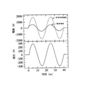また、このような素子を2つ並列に接続したものを3組、直列に接続した素子を用い直・並列化による大容量化も検討した(図2)。連続通電試験の結果、この素子の電流容量は100 A(実効値)と1素子の2倍となり、また電源電圧260 V(実効値)で短絡時に1.8 kA(ピーク)の電流が2サイクル流れる試験回路で限流試験を行った結果、6つの素子すべてが動作し600 A(ピーク)以下に抑制することを確認した(図3)。このとき素子に印可された電圧は約300 V(ピーク)であり、素子容量は21 kVAであった。この試験より薄膜限流素子を直・並列化することにより容量を増大できることを実証できたといえる。
