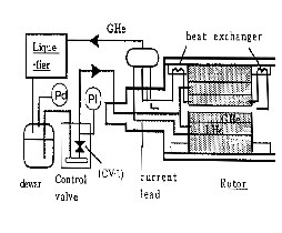 さらに回転子の冷却特性も非常に優れていることが確認された。回転子はヘリウム液化機と組み合わせクローズド・ループで冷却する構成であり、図1 にその概略を示す。定格出力79.7 MWの連続運転における回転子の熱負荷は72 W(低温配管を含む)であり、また、試験の全期間を通して定格出力運転における熱負荷の変動は±1 W以内で安定稼働が確認できた。