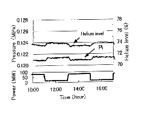 また、回転子を安定に冷却するためヘリウムの供給制御は重要なテーマである。この回転子はヘリウム液面を自律的に制御する方式を採用した。すなわち、液体ヘリウムの入口圧力(Pi)を一定の圧力に設定し保持するだけで、回転子内に自律的に平衡液面を形成するようにしたもので、熱負荷の変動など擾乱が加わっても供給圧力を一定にしておけば液面は一定に維持できる方式である。図2は発電機の出力を20%から100%まで変化させ、回転子の熱負荷が約5 W変化したときの自律制御の動作であり、熱負荷の変化に対応して液面位置と入口圧力(Pi)が自律的に変化し液体ヘリウムの供給バランスを維持している。