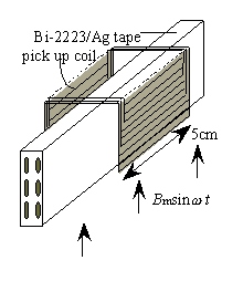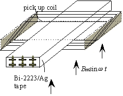 磁化損失測定は、直線上の試料テープの数センチの区間に、改良鞍型ピックアップコイルまたは試料鎖交型ピックアップコイルを設置し測定している。前者はテープ面に平行な磁界下での測定用、後者はテープ面に垂直な磁界下での測定用である。テープの一部分を囲む直方体面上にピックアップコイルを巻きその面上での電界を測定し、マグネット磁界と合わせてポインチングベクトルを求めていると解釈すると理解しやすい。これらの方法は、原理的に、十分長いテープ線が一様な外部磁界にさらされているという状態での交流損失を測定するものであり、巻き線ではなく、テープ単独の性能をまさに評価していることになる。