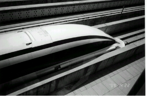 走行時の浮上高さは10センチである。これまでの私の浮いた経験は、水中でのいわゆる浮きの姿勢、浮くというよりは飛び上がる飛行機の離陸時、それに遊園地で遠心力を利用して壁に張りついて上がっていくアトラクション、くらいのものである。今回の試乗ではスピードもさることながら、やはり浮く感覚の確認をしてみたかった。浮くというとき、なんとなく風船で曳き上げられるようなフワリとした浮遊感を想像してしまうのだが、姿勢がきちんと制御された今回の場合そんなことはないのだった。超電導体の浮上実験のイメージから、ゆらゆらを想像してしまうせいだろうか?