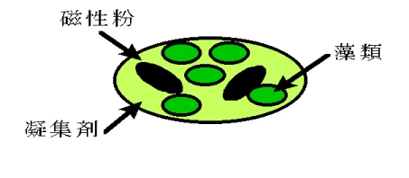 日立製作所機械研究所環境機器開発センタ第一研究室室長の佐保典英主任研究員は、「超電導磁石外に磁気フィルタを配置して連続的にアオコを除去できる構造を開発し、大容量実用機の実現に近づいた。」とコメントしている。磁気分離法は, 従来製鉄所内において再生使用される多量の冷却水中から微細な鉄粉を除去する浄化装置に適用されていた。アオコ等の藻類除去に応用する場合は、藻類が非磁性であるために,分離前の前処理として取水した汚濁湖沼水に少量の磁性粉と凝集剤を加えて混合・攪拌し,磁性粉と原水中の汚濁粒子が一緒に凝集した図1に示すような磁性フロックと呼ばれる柔らかな塊を形成する。この磁性フロックを磁石の磁気力で分離・除去し、湖沼水を浄化する。磁性フロックとはいえ、磁性粉の含有量は非常に少ないので、速い流れの中から漏れなく吸引・捕捉するためには非常に強い磁場が必要となり、超電導磁石の適用が有利となる。