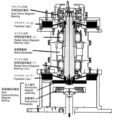 なお、運転試験を終了した本機は、現在、全体を製作した光洋精工において解体研究に供されており、長期にわたる運転試験後の超電導軸受やフライホイール本体の劣化状況などが調査されている。また、プロジェクトでは、この小型モデルの成果をうけて、現在、次の中型モデルを製作・調整中である。直径1,000 mmのCFRP製フライホイールを17,200 rpmで回転させて10 kWhを貯蔵する。本機は、大型システムに適したラジアル型超電導軸受を組み込むことを前提にしたアウターローター型の構造をとっており、基本構造の検証とともに、こうした構造のための高速回転制御技術の検証を行う予定である。