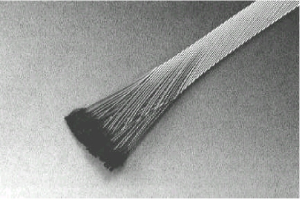 このニオブチタン成形撚線は、LHCの主超伝導双極アウターケーブルに用いられるもので、直径0.825 mmの素線36本を撚線し、幅15.1 mm、平均厚さ1.48 mmの楔型断面形状に成形した平角撚線で、それぞれの素線は、直径6μのニオブチタフィラメント6,426本が螺旋状に無酸素銅に埋め込まれた構造となっている。今回納入したのは、品質認定用として製作した3.8 km、重量にして620 kgであり、既に量産を開始し、2002年12月までに、納入数量約600 km、重量にして約100 t規模の超伝導線材を納入することになっている。