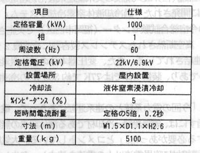 表1 超電導変圧器の主な仕様