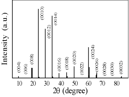 結晶成長の最後の1cmの部分から非常に大きな結晶(4*2*0.1mm図1)が得られた。X線回折では、鋭いBi2223のみのピークが見られ(図2)、帯磁率の測定ではas-grownのサンプルでTc=105 Kにおいて非常にシャープな転移を示す。このサンプルを酸素雰囲気、600度でアニールすると、Tcは最大の110 Kに達する。また断面TEM写真にはBi-2212相が混入しているのが確認されたが、その総量は全体の約2%以下であった。結晶成長の初めから中頃あたりの部分は、結晶も小さく、Bi2212相も比較的多く混入していた。このことについて、実際に結晶成長を行った東京理科大学の藤井武則氏は、「結晶成長の初めにソルベントを用いなかったために、結晶成長の最後の部分になってやっとソルベントがBi2223の結晶成長に最適化したためであろう。」とコメントしている。実際に溶融部分の組成を調べ、その組成のソルベントを用いて結晶成長を行うと、結晶棒全体にわたってBi2212のインターグロウスの少ない結晶が得られた。しかし、結晶の大型化には別の要因があると思われ、Bi2212の様に大型で良質のサンプルを結晶棒全体において成長させるにはまだ最適化すべき条件が多く残されている。