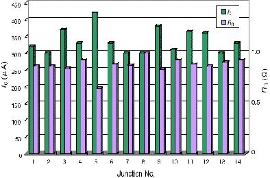 ただし臨界電流値は0.3mA(臨界電流密度に換算すると70mA/cm2)で、回路応用にはまだまだ低い。この点について、チームリーダーの高見哲也氏は「ランプエッジ型接合で適用されている界面改質バリアを用いれば、臨界電流値は向上するのではないか」「当面、1000mA/cm2の臨界電流密度と100接合でσ=8%の特性ばらつきを目標にしたい」と言う。今後の特性向上を期待したい。