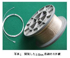 同研究グループは臨界電流を高めるため、断面の構成を独自に開発したROSAT wire(Rotation-Symmetric Arranged Tape-in-tube wire)とし、高強度の銀合金シースを用いて3.5 km長の平角線材を得ることに初めて成功した。鞄立製作所日立研究所岡田道哉主任研究員は「3.5 kmの長さに到達したことで、1本のロットで1 GHz−NMR用の酸化物超電導内層コイルを同時に2個作れるようになった。そのため、1ロットの線材を有効に活用でき、限界性能が要求されるNMR開発に対応するための、製造プロセス側からの選択肢を広げることが可能になった。本格的な応用の準備が整ったことになるほか、今後の開発スピードを大幅に向上できるだろう。」と明るい見通しを述べた。また、長尺線材開発を担当した日立電線潟Aドバンスリサーチセンタ佐藤淳一研究リーダーは「今回到達した3.5 kmは、線材1本の長さとしてはこれまで製作された高温超電導線材の中で最も長尺である。距離にすると、東京−上野間とほぼ一致する。Nb3Snなどの実用金属系超電導線と同じ生産体制がとれるようになった。実際に作業現場では金属系線材と並行して伸線作業が行われている。」と語った。また、1GHz−NMRシステムを開発している物材機構、木吉 司サブグループリーダーは「1GHz−NMR用マグネットシステムの開発は今が正念場。NMR実機の酸化物コイルの性能として23.5Tを発生できることをまず示さなければいけない。23.5Tの発生を今年度中に挑戦し、その後、永久電流モード化を進めて、早期に理研が進める蛋白質構造解析用に利用可能なNMRマグネットとして完成させたい。」と今後の見通しを語った。丸い断面の線材の中にテープ状のフィラメントが埋め込まれるBi-2212系のROSAT線材が提案されたのは98年7月。同グループは3年弱で実用線材長に到達したことになる。