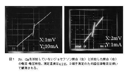 「結果は予想以上にドラスティックであった。ほんのわずかな置換元素の添加で、すべての接合から超伝導ショートと見られる電流が消え、理想に近い電流-電圧特性が得られた」と藤巻助教授は話す。図1が典型的な電流-電圧特性であるが、準粒子特性は原点を向いており、超伝導ショートによる余剰電流は見られない。磁場特性も典型的なフラウンホーファパターンを示し、接合面内を均一にジョセフソン電流が流れていると同グループでは自信を深めている。