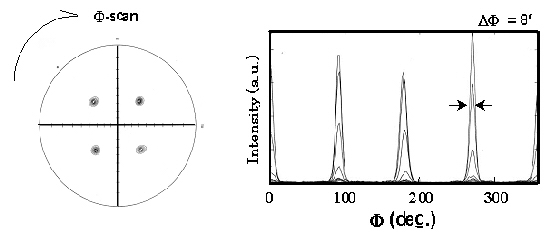 図2 30 m長Y-123膜の(103)面X線極点図形