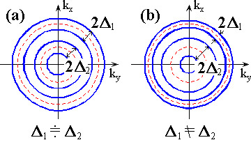 MgB2は、その転移温度(Tc)がいわゆる“BCS理論の壁”付近に位置することもあり、発見当初からその超伝導機構について活発な研究がなされてきた。スピンシングレットの形成[1]やクーパー対形成の媒介体がフォノンであること[2]は比較的早い段階で明らかになった。しかし、その超伝導ギャップがフォノンによる超伝導体において仮定されることの多い等方的s-波超伝導ギャップ(図1(a)参照)とは異なり“多重ギャップ”であることが示唆されると[3]、MgB2の電子状態の特徴である性格の異なる2種類のバンド(硼素2pのsとp軌道に由来する二次元的および三次元的なバンド(またはフェルミ面)(図2(a)、(b)))と超伝導ギャップの大きさとの関係を知ることが、高いTc発現のメカニズムを理解するための鍵を握ると考えられるようになった。それまでの研究の多くは、運動量を積分した形の情報が得られる実験手段であったためこれらの関係を明らかにすることは難しかったが、今年に入り運動量に分解した電子状態を測定できる角度分解光電子分光を用いたMgB2超伝導ギャップ研究が東北大学と東京大学物性研究所の各グループで独立に報告されることにより[4,5]、MgB2の多重ギャップの正体が超伝導ギャップのバンド(またはフェルミ面)依存性(図1(b)参照)によることが確立され、その結果MgB2の高い転移温度を生み出すメカニズム[6]がより明確になった。ここでは、MgB2が2ギャップ超伝導体であることに対し最も直接的な証拠を与える角度分解光電子分光測定の結果を我々の研究結果を中心に紹介する。