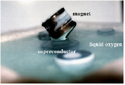 図のように超電導体と磁石の間に液体酸素のブリッジができる。
