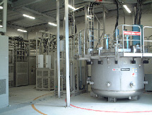 このSMESの特徴は、まず5000キロワットという大出力が可能であり、従来のUPS(無停電電源装置)等では上可能であったバンク単位の補償、つまり、工場全体の一括補償を可能としている点にある。また、待機時の搊失を低減できる常時商用給電方式を採用し、瞬低発生時の電力系統からの切替時間は1/2サイクルを実現している。さらに、冷却システムには、コイルや電流リード等の冷却対象に合わせた小型冷凍機を組み合わせることで、保守・メンテナンス性に優れ、高圧ガス保安法に関わる法定管理者が上要なシステムとなっている。なお、本SMESのコイルはNb-Ti製のラザフォード導体を用いたもので、エポキシ含浸タイプとしては高い電圧まで対応出来る点が特徴である。