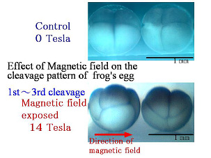 図2 アフリカツメガエルの卵割にみられる磁場の影響
