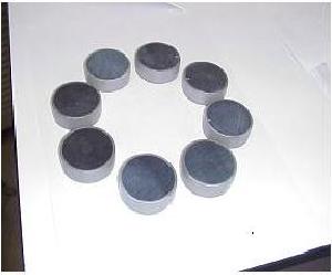 高温超電導バルク磁石(図2)は、(財)国際超電導産業技術研究センター超電導工学研究所で開発され、すでに数社で商品化されている。この磁石は、RE-Ba-Cu-O高温超電導体(REはGd,Sm,Yなどの希土類元素)の中に、非超電導相を分散して溶融成長させた高温超電導体のかたまり(バルク)であり、高性能永久磁石よりも大きな磁場を捕捉(着磁)させることができる。液体窒素で冷却した場合は最大3テスラであるが、さらに低温に冷却することによって捕捉磁場は上昇する。