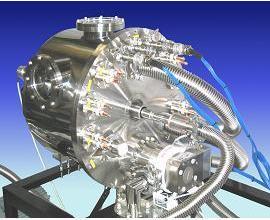 北野精機(株)、東京海洋大学海洋工学部の和泉充教授および福井大学工学部杉本英彦教授は、高温超電導バルク磁石を液体窒素で冷却、渦巻き型電機子コイルで着磁する技術を高温超電導回転機に応用して、機器設計、冷却機構の研究を行ってきたが、このほど界磁磁石を液体窒素によって冷却する実証同期モデル(図1)の回転試験に成功した。モータはブラシレスのアキシャルギャップ型であり、バルク体を液体窒素に浸漬しないで効率よく冷却することが可能であるばかりか、固定電機子と回転界磁子を交互に積層させて径方向のサイズを大きくすることなく高出力化が可能な設計となっている。この成功は、バルク磁石を回転界磁磁石とする高温超電導モータの実機への適合性を高めたばかりか船舶のポッド推進器や、風力発電用の発電機への適合化にはずみをもたらす。