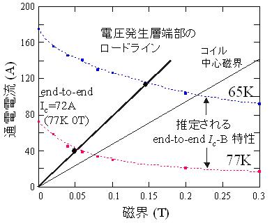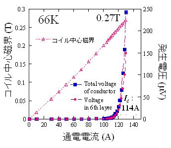 図5 66KにおけるコイルのI-V曲線と中心磁界