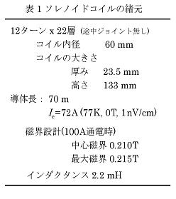 表1 ソレイドコイルの緒元
