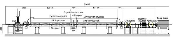 現在想定しているILC加速器システムの概略を図2に示す。主線形加速器の中枢部は1.3 GHzで運転する超伝導Nb空洞で構成する。加速勾配は35 ~ 45 MV/m程度が考えられている。8個ないし9個のセルを単位長さ約1 mの空洞にまとめ、12程度の空洞を一つのクライオスタットに設置する(図3)。空洞温度は2 K。重心系エネルギー500 GeVを得るのに必要な総空洞数は約14000、1 TeVに到達するにはその約2倊の空洞を運転することになる。主線形加速器は繰り返し5 ppsのパルス運転を行う。パルス長は約1.5 msでそのうち0.95 ms程度でビーム加速を行う。