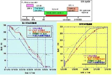 第8サイクルは平成16年7月26日の真空排気から始まり、8月11日からの約1ヶ月の超伝導コイルの冷却と励磁試験を経て、9月17日から翌平成17年1月20日までプラズマ実験が実施された。第8サイクルにおける運転は順調に進み、平成17年2月15日には室温までの加温が終了した(図2参照)。
