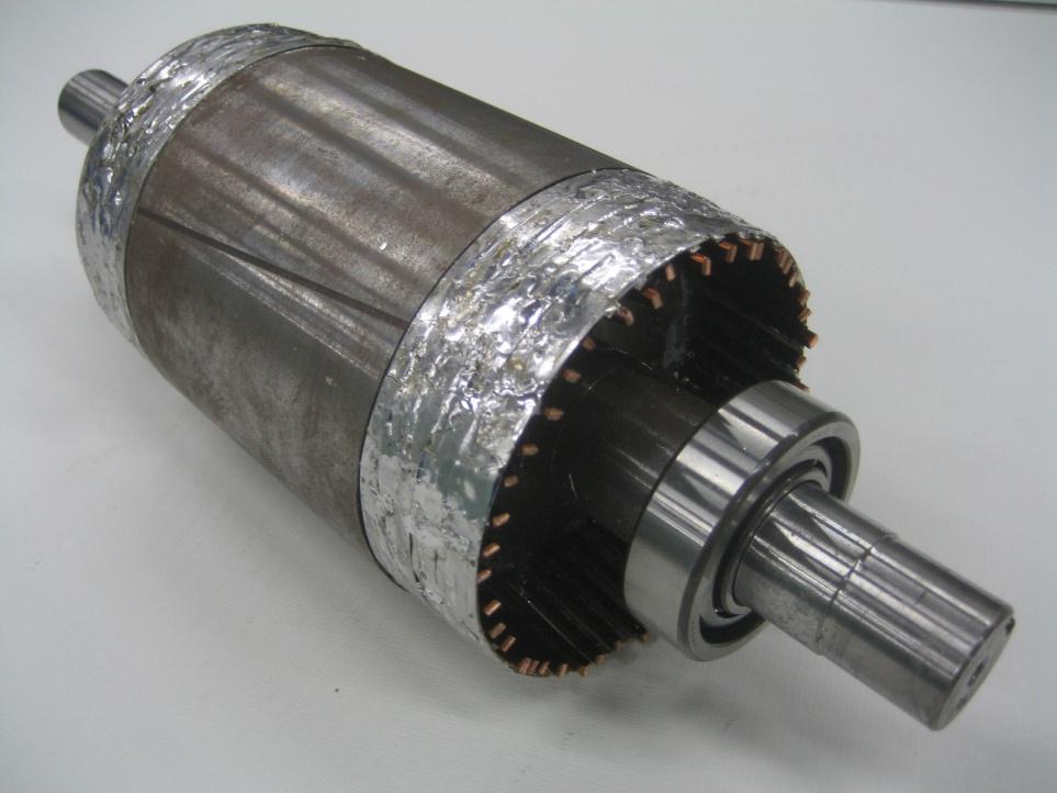 図1には、市販のビスマス系高温超電導テープ材を適用したHTSかご形回転子の外観写真を示す。臨界電流が74 A@77 K級のテープ材(テープ平均幅:2.6